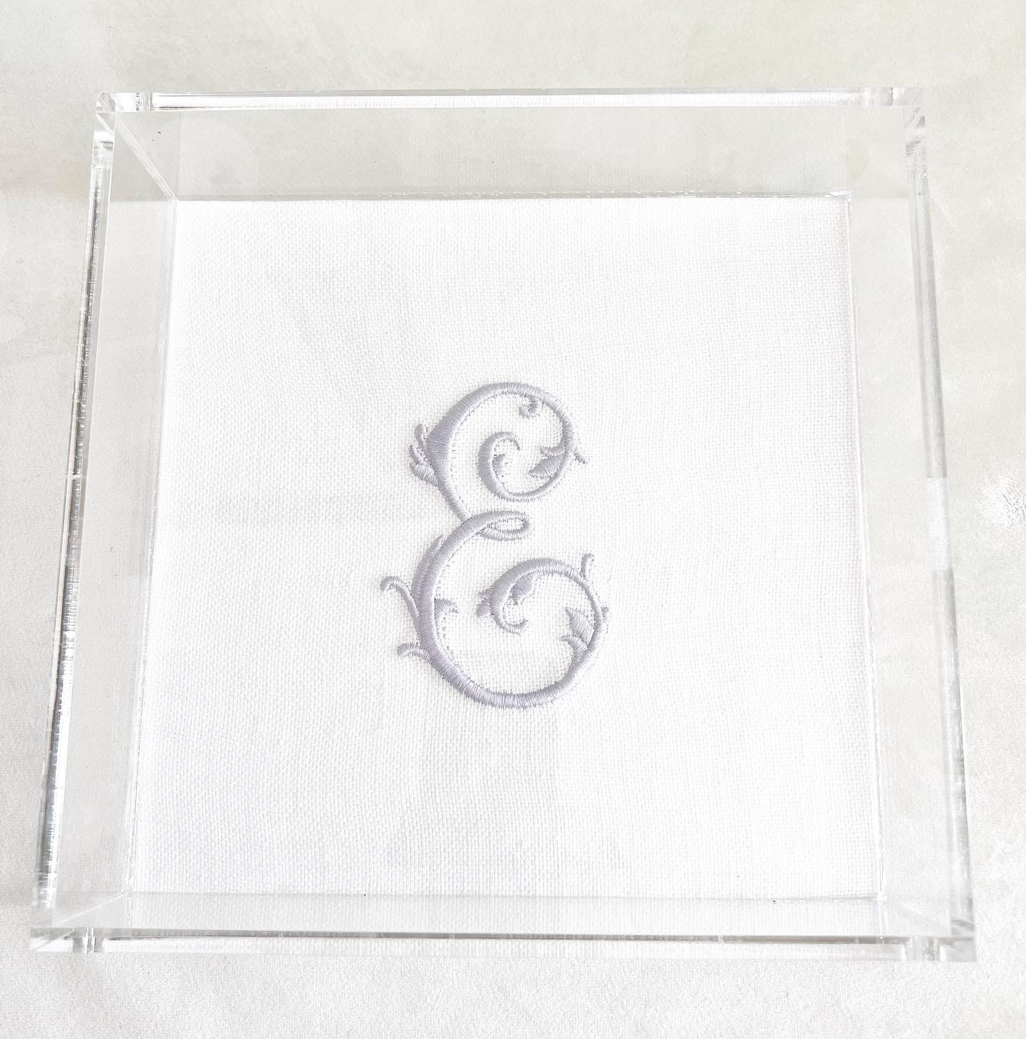 Luxe acrylic tray with single initial. Measures 8" x 8" Custom made to order with the highest quality of materials. Contact directly for color availability.