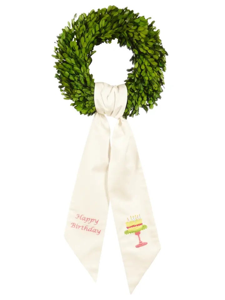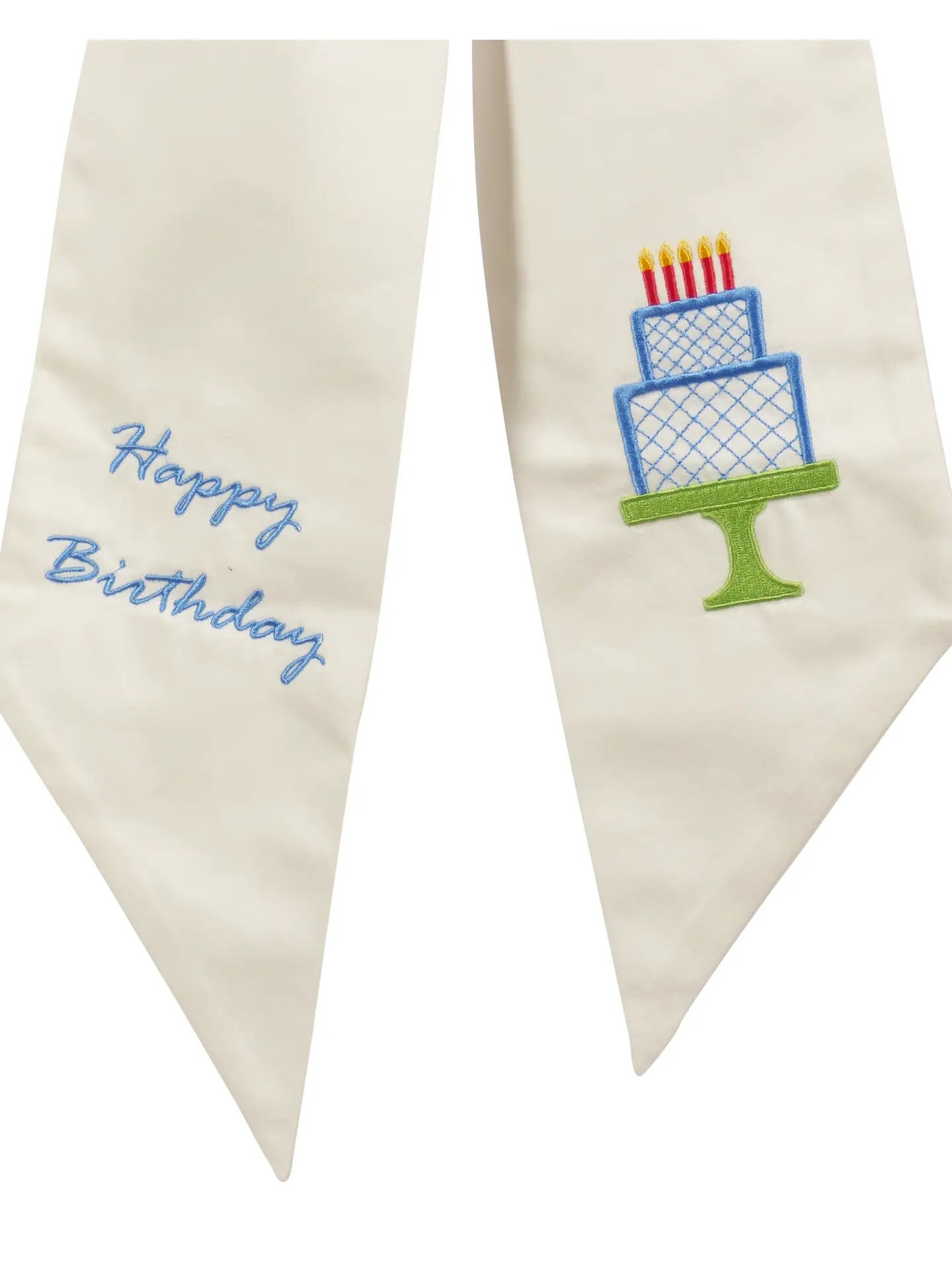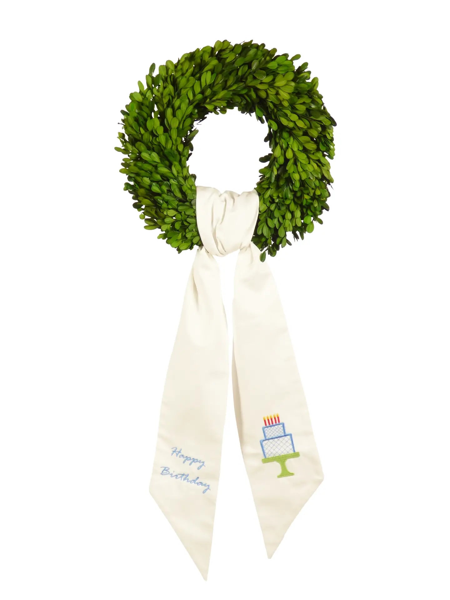 Celebrate life's special moments with our beautiful Happy Birthday wreath sash! Available in pink or blue writing on light cream-colored sash. Simply tie the sash in a knot on the wreath of your choice. Measures 60'. Machine washable.