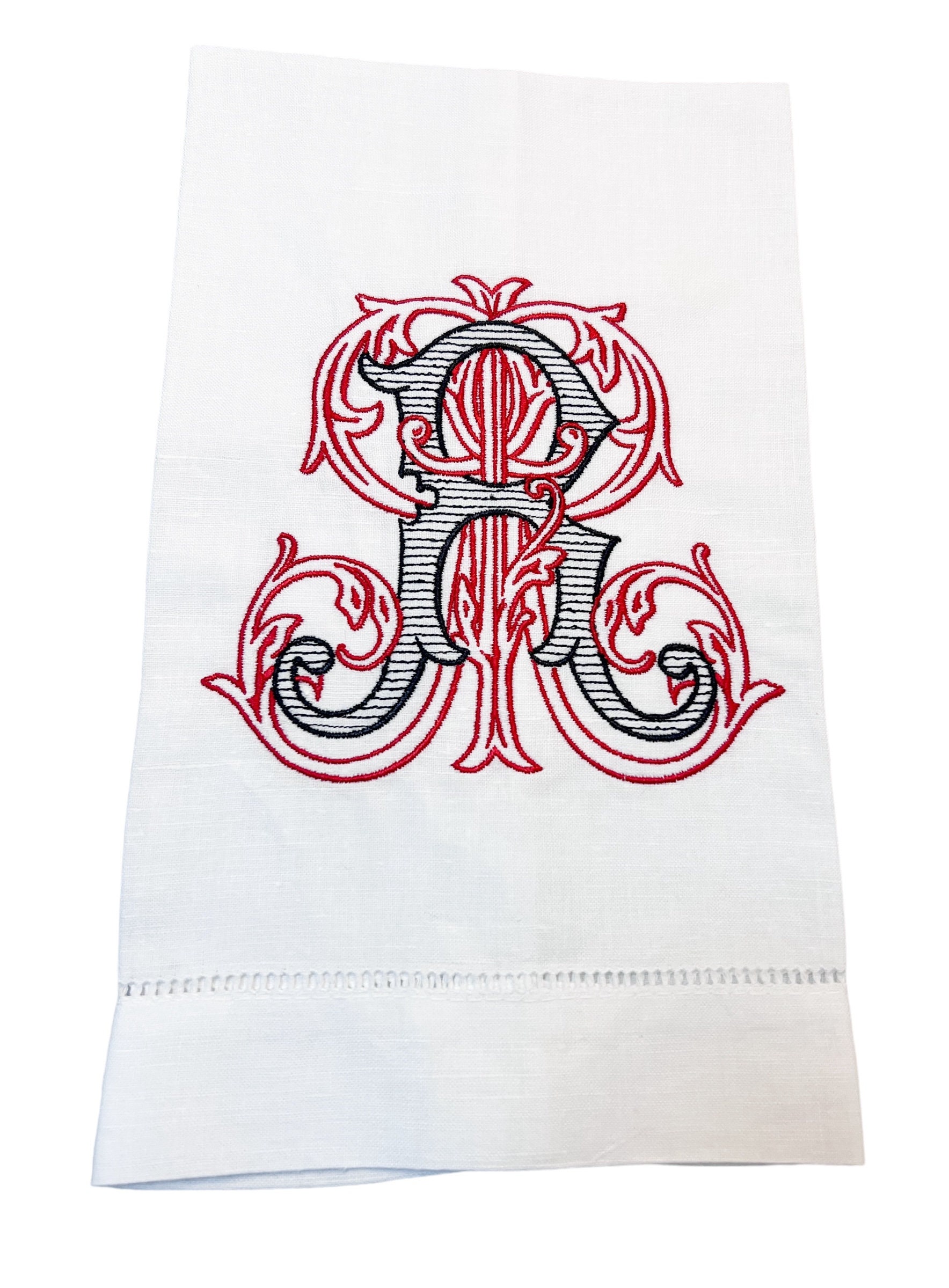 The Custom Initial Monogrammed Hand Towel is a beautiful addition to any home. Perfect for the bar, kitchen or bath. The monogram is created upon ordering so we can send you a picture of your monogram if requested. We use neutral thread colors but use any color combination. Please message me directly about thread colors.